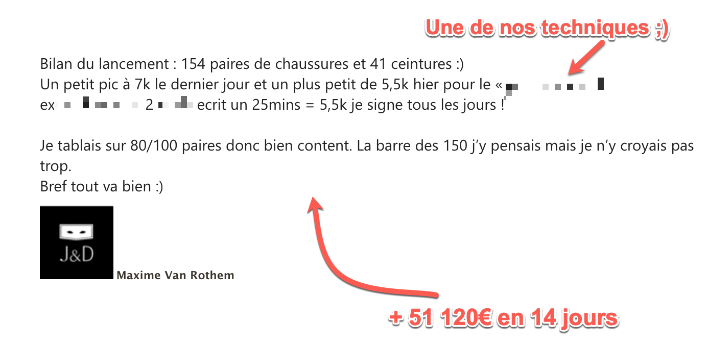 ✅ Max Sauveur, une marque de maroquinerie au CA annuel de 220 000€, a généré + 75 200€ avec notre système pendant ces 6 premiers mois.